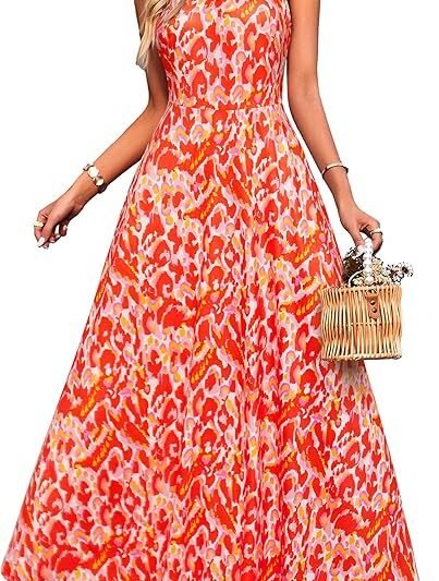 STYLEWORD Women’s Halterneck Elegant Summer Dress, Sleeveless Floral Dress, Maxi Dress, Long Beach Dress
